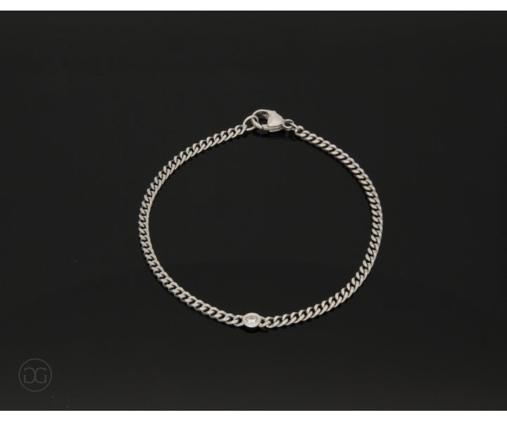 Dieses sportlich elegante Armband schmiegt sich sanft um das Handgelenk und besticht durch sein zeitloses Design. Es lässt sich wunderbar zu jedem Outfit kombinieren und ist ein Klassiker für jede Gelegenheit, ob im Büro, im Theater oder zum Dinner mit Freunden. Der strahlende Brillant kann selbstverständlich noch durch weitere Diamanten oder auch Farbsteine, ganz nach Ihren Wünschen, ergänzt werden.