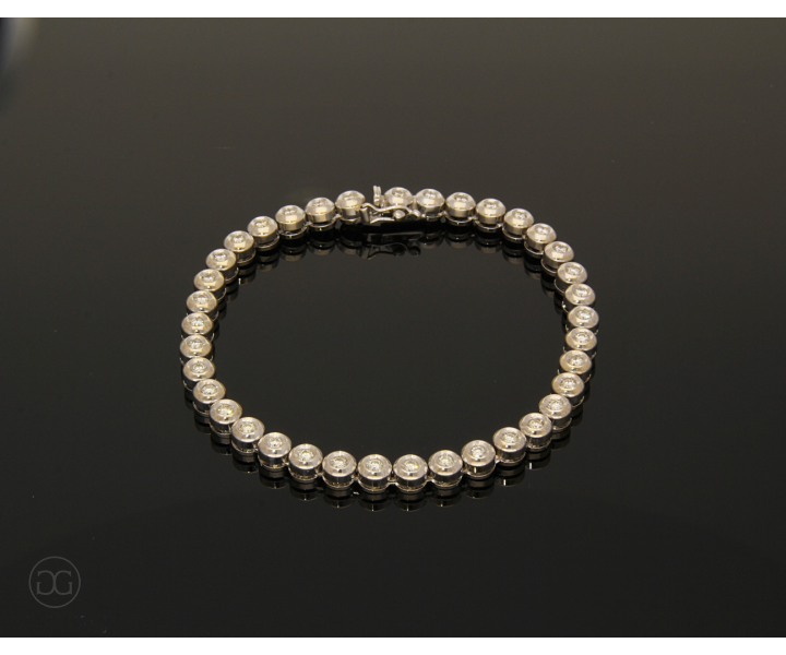 Dieses edle Diamantarmband schmiegt sich sanft um das Handgelenk und besticht durch sein elegantes Design. Zahlreiche hochwertig geschliffene Brillanten von sehr guter Farbqualität gefasst in edlem Weißgold geben diesem Schmuckstück eine ganz besondere Note. Zudem bietet der hochwertig gearbeitete Schnappverschluss ausreichend Sicherheit und ist sehr leicht zu händeln.
