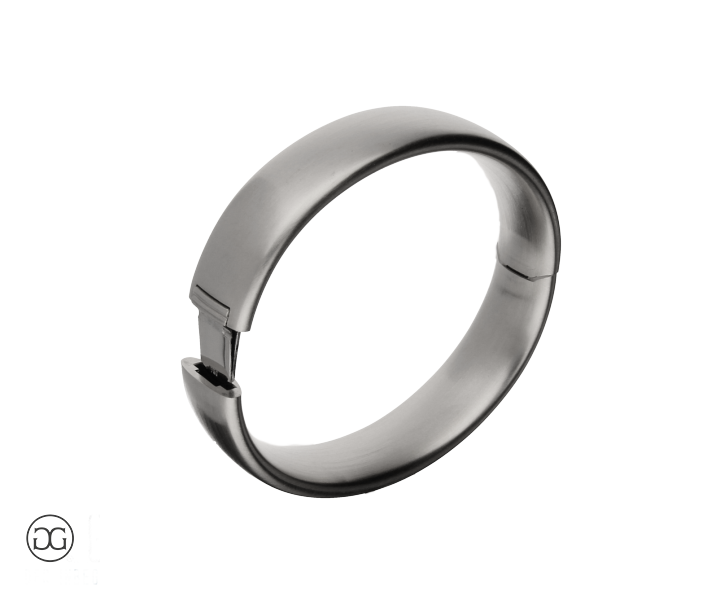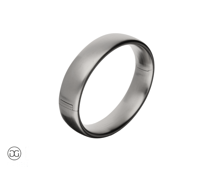 Die stabile, formschöne Schiene dieses Armreifs schmiegt sich sanft um das Handgelenk und besticht durch ihre seidenmatte Optik.