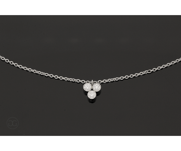 Dieser dezent elegante Halsschmuck ist in edlem Platin gefertigt und mit hochwertigen Brillanten besetzt. Sein schlichtes, zeitloses Design unterstreicht dabei die Wertigkeit der verarbeiteten Materialien und verleiht ihm eine ganz besondere Note.