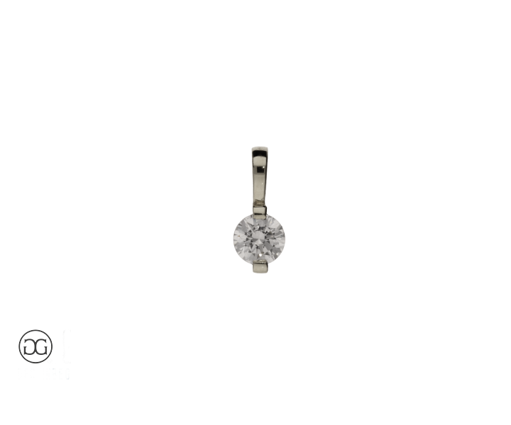 Dieser klassische Diamantanhänger in edlem Weißgold besetzt mit einem wunderschönen, hochwertigen Brillanten von sehr guter Farbqualität ist ein Sinnbild für zeitlose, schlichte Eleganz.