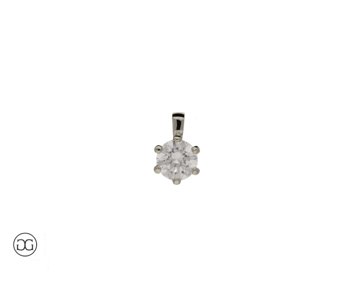 Dieser klassische Diamantanhänger in edlem Weißgold besetzt mit einem wunderschönen, hochwertigen Brillanten von sehr guter Farbqualität ist ein Sinnbild für zeitlose, schlichte Eleganz.
