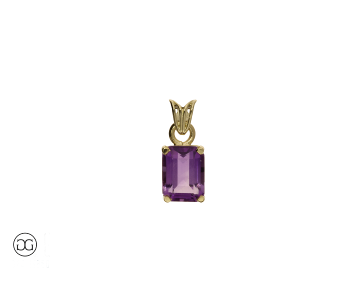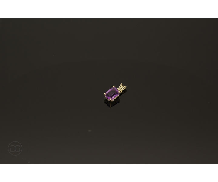 Ein wunderschöner violetter Amethyst im Smaragdschliff - gefasst in hochglanzpoliertem Gelbgold - verleiht diesem Schmuckstück eine ganz besondere Note.