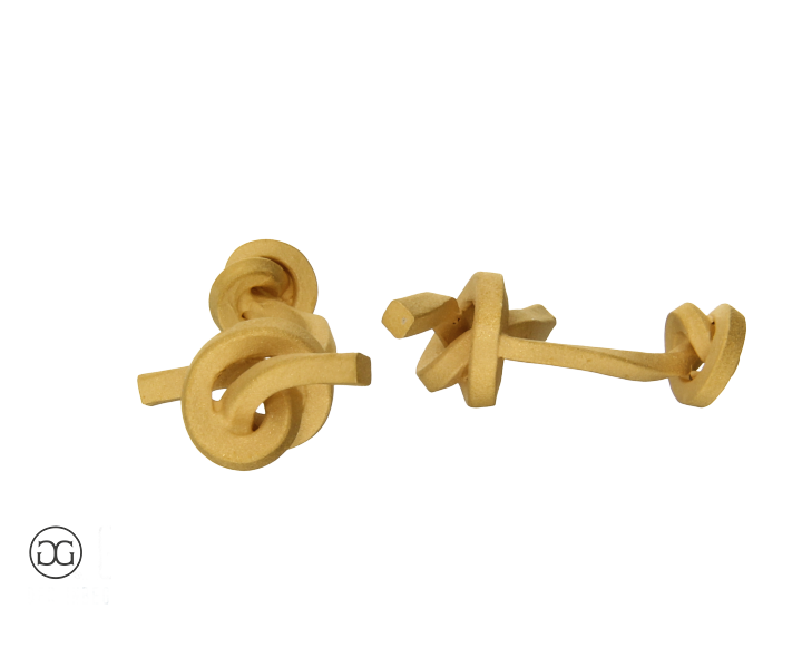 In liebevoller Handarbeit wurden diese knotenartigen Skulpturen modelliert, zu Manschettenknöpfen verarbeitet und anschließend vergoldet.