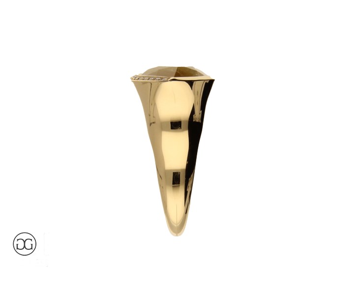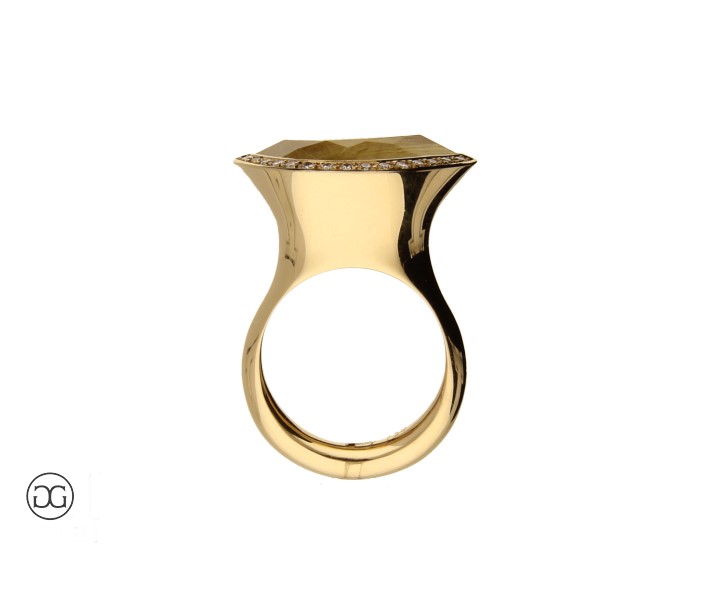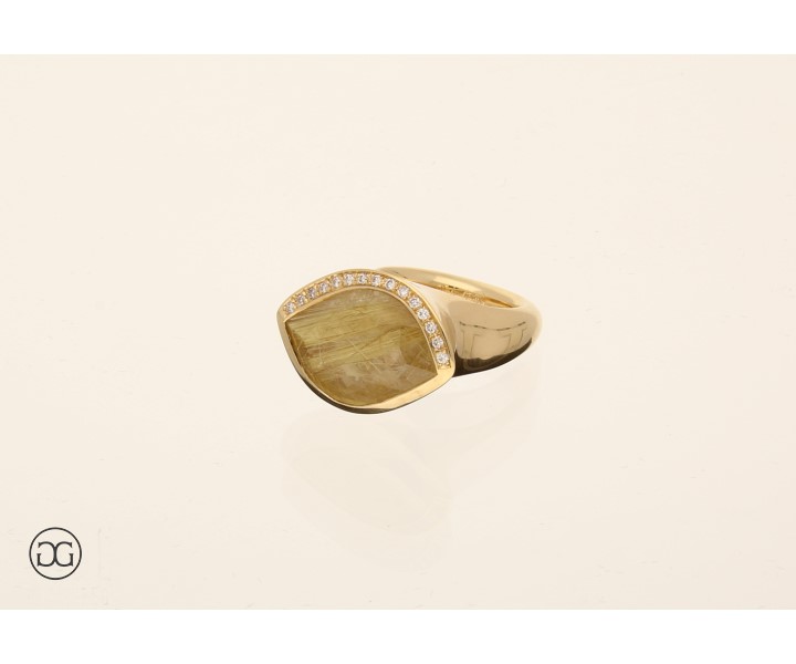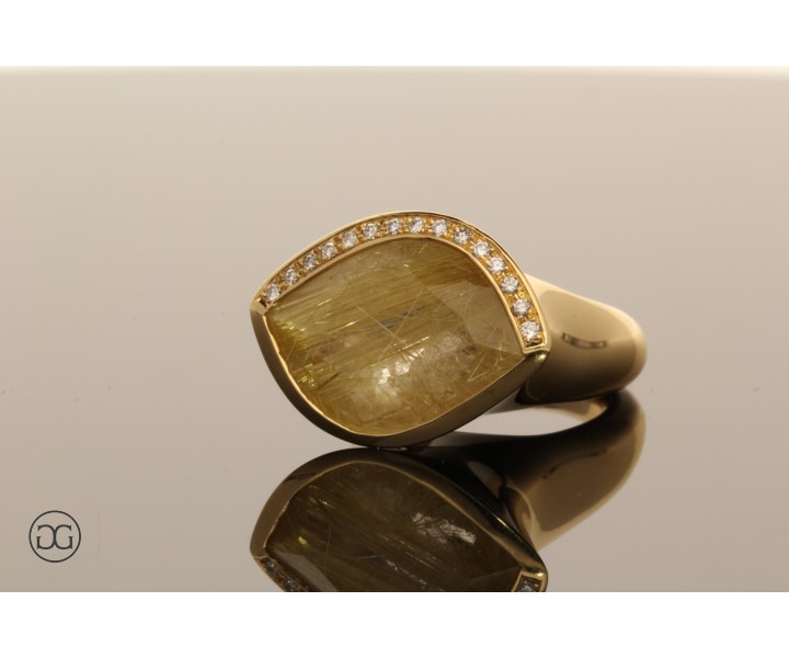 Edles Gelbgold in Hochglanzpolitur, ein wunderschöner Rutilquarz und hochwertige, funkelnde Brillanten verleihen diesem unverwechselbaren Schmuckstück einen Hauch von schlichter Eleganz und moderner Weiblichkeit.