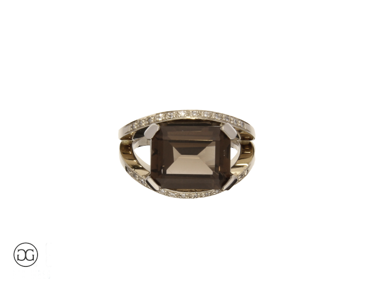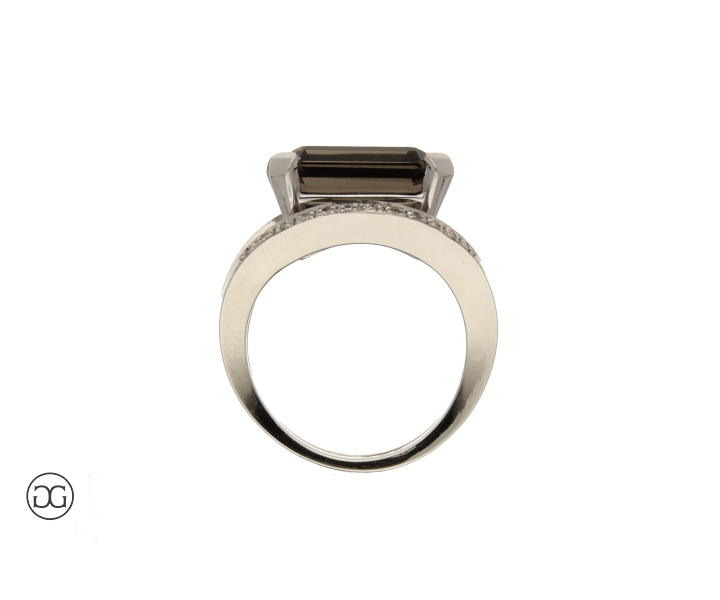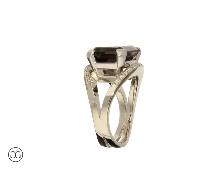Edles Weißgold in Hochglanzpolitur, ein wunderschöner Rauchquarz und hochwertige, funkelnde Brillanten verleihen diesem unverwechselbaren Schmuckstück einen Hauch von schlichter Eleganz und moderner Weiblichkeit.