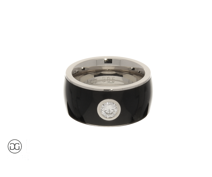 Edles Weißgold in Hochglanzpolitur, schwarz glänzendes Colorith und ein wunderschöner, funkelnder Brillant verleihen diesem unverwechselbaren Schmuckstück einen Hauch von schlichter Eleganz und moderner Weiblichkeit.