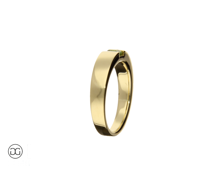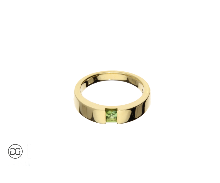 Edles Gelbgold in Hochglanzpolitur und ein wunderschöner grüner Turmalin verleihen diesem unverwechselbaren Schmuckstück einen Hauch von schlichter Eleganz und moderner Weiblichkeit.