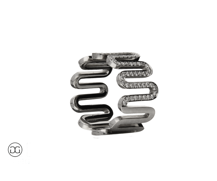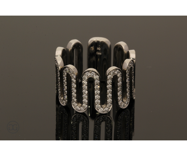 Dieser edle Diamantring besticht durch sein außergewöhnliches, modernes Design und seine brillierende Optik.