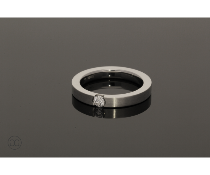Die klare Linienführung, feinstes Platin in seidenmatter Optik und ein wunderschöner, hochwertiger Brillant verleihen diesem Ring einen Hauch von schlichter Eleganz.