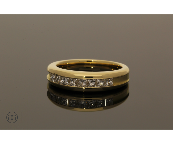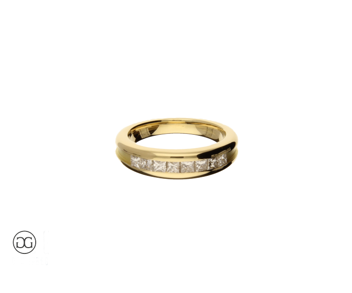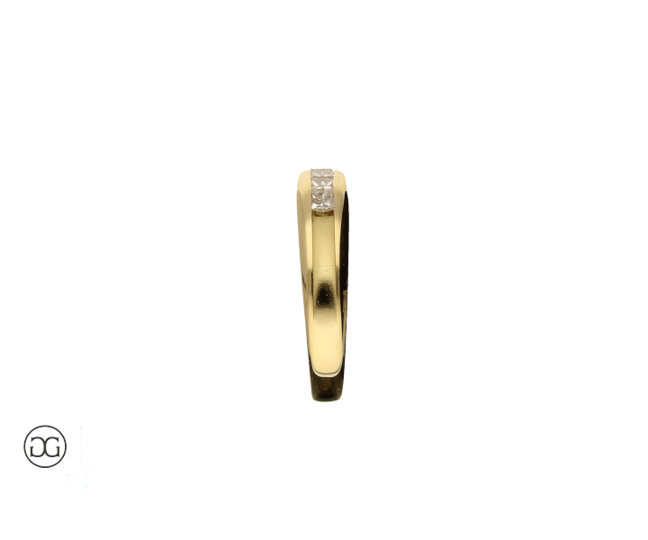 Die klare Linienführung, feinstes Gelbgold in Hochglanzpolitur und wunderschöne, hochwertige Diamanten im edlen Princess-Schliff verleihen diesem Ring einen Hauch von schlichter Eleganz.