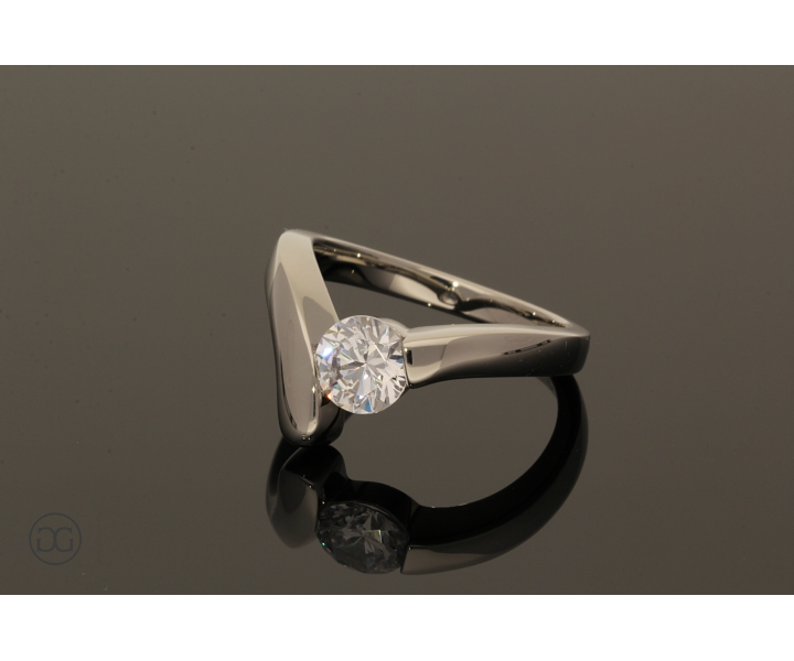 Dieser Solitärring zeigt sich im geschwungenen Design mit eingespannten Brillanten. Die hochglanzpolierte, geschwungene und gewölbte Oberfläche gibt dem Brillantring eine weiche Linienführung. Im Alltag lässt er sich zudem sehr gut zu jedem Outfit kombinieren und ist ein Klassiker für jede Gelegenheit, ob im Büro, im Theater oder zum Dinner mit Freunden. Selbstverständlich kann der Brillant auch in einer anderen Farbnuance und Größe ganz nach Ihren Wünschen individuell angepasst werden.