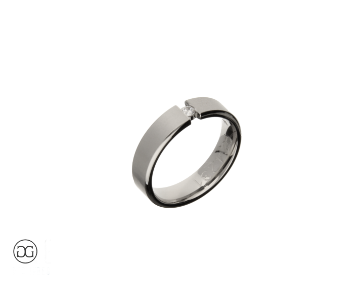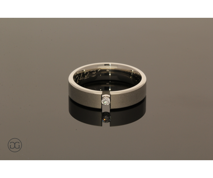 Das zeigt sich im geradlinigen mattierten Weißgold und dem eingespannten Brillanten.