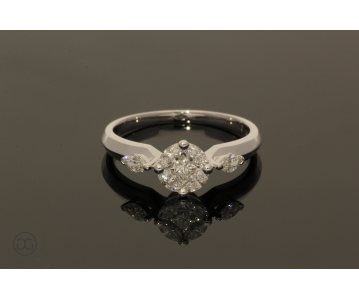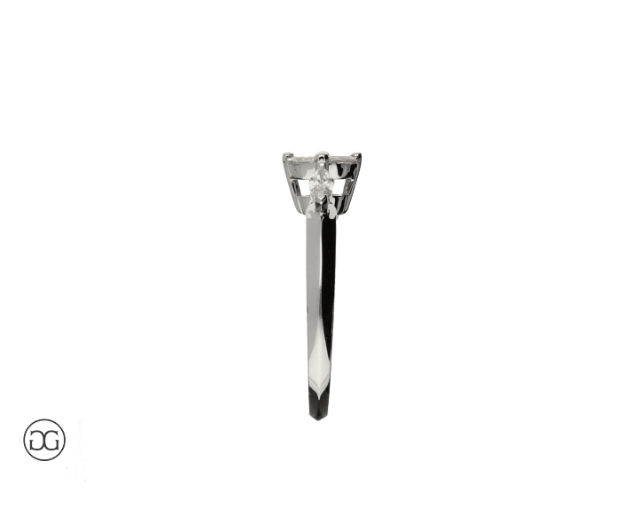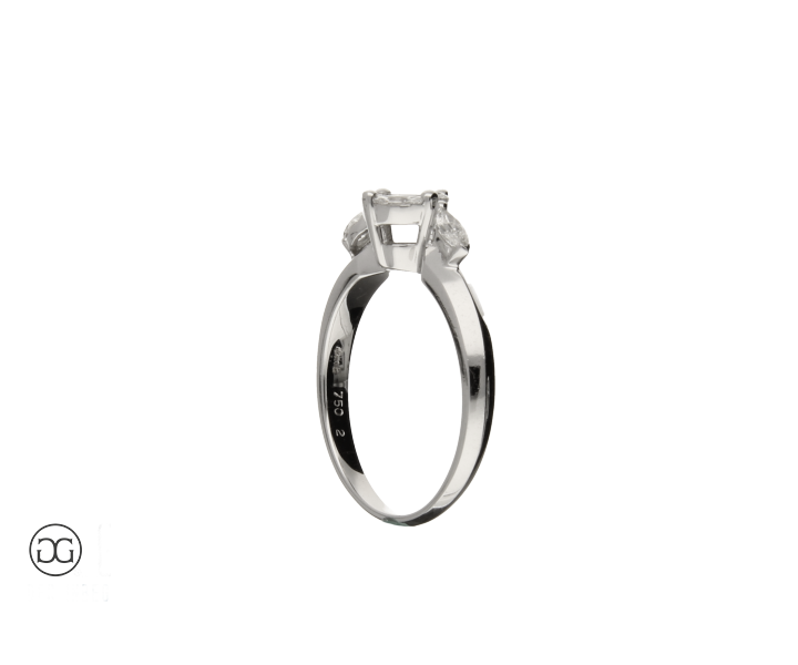 Die klare, feminine Linienführung, feinstes Weißgold in Hochglanzpolitur und hochwertige Diamanten im Princess- und Navetteschliff verleihen diesem Ring einen Hauch von schlichter Eleganz.