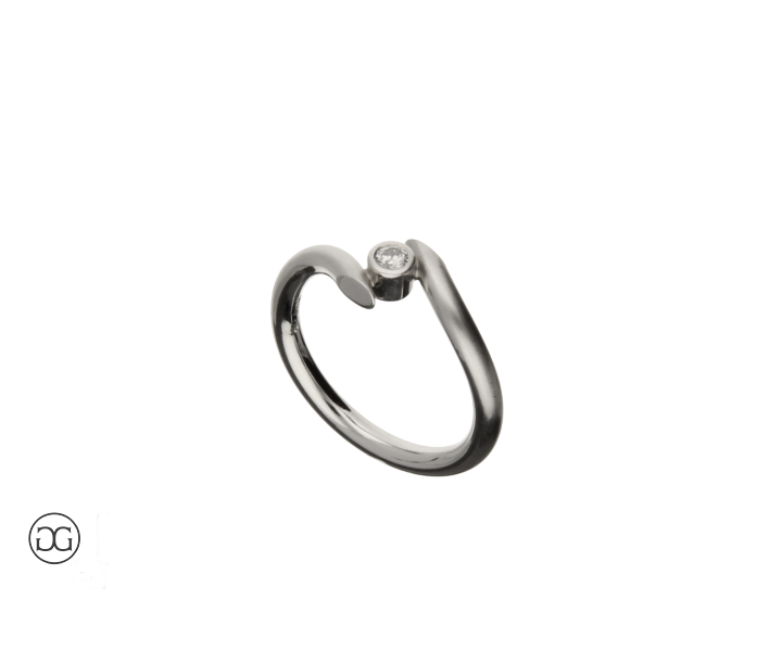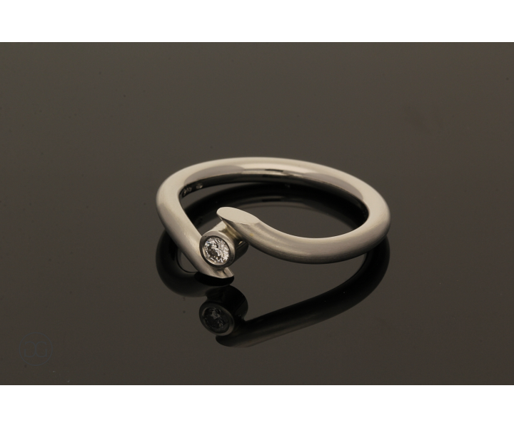 Edles Platin und ein hochwertig geschliffener Brillant von sehr guter Farbqualität verleihen dabei diesem unverwechselbaren Schmuckstück eine ganz besondere Note.
