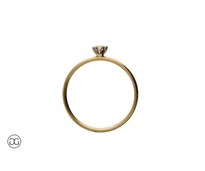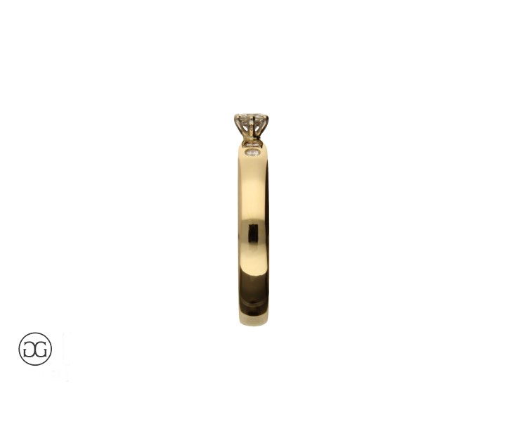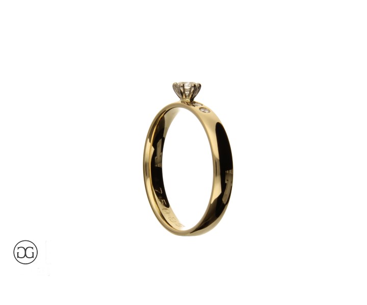 Die klare, feminine Linienführung, feinstes Gelbgold in Hochglanzpolitur und ein wunderschöner, hochwertiger Brillant verleihen diesem Ring einen Hauch von schlichter Eleganz und moderner Weiblichkeit.