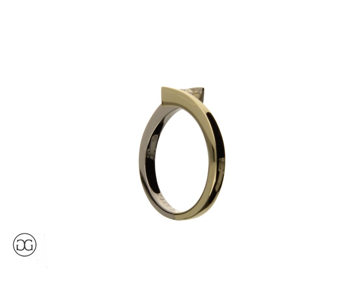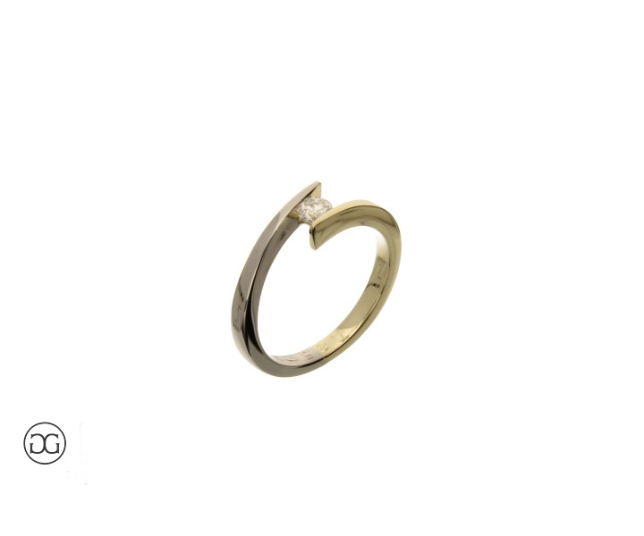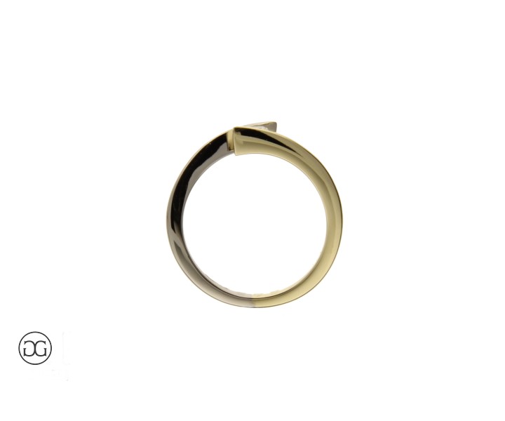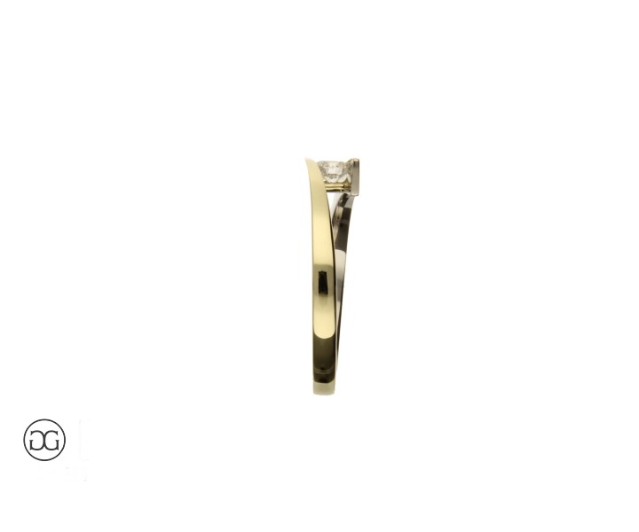 Die klare, Linienführung, feinstes Gelbgold und Palladium in Hochglanzpolitur und ein wunderschöner, hochwertiger Brillant verleihen diesem Ring einen Hauch von schlichter Eleganz und moderner Weiblichkeit.