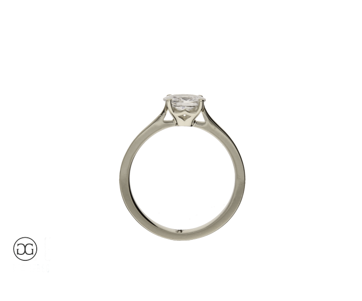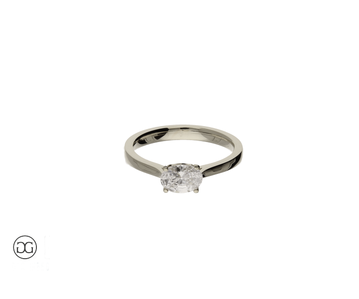 Die klare Linienführung, feinstes Weißgold in Hochglanzpolitur und ein wunderschöner, hochwertiger Diamant im Ovalschliff verleihen diesem Ring einen Hauch von schlichter Eleganz.