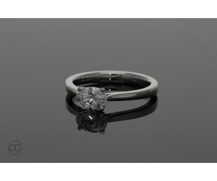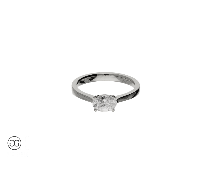 Die klare Linienführung, feinstes Platin in Hochglanzpolitur und ein wunderschöner, hochwertiger Diamant im Ovalschliff verleihen diesem Ring einen Hauch von schlichter Eleganz.