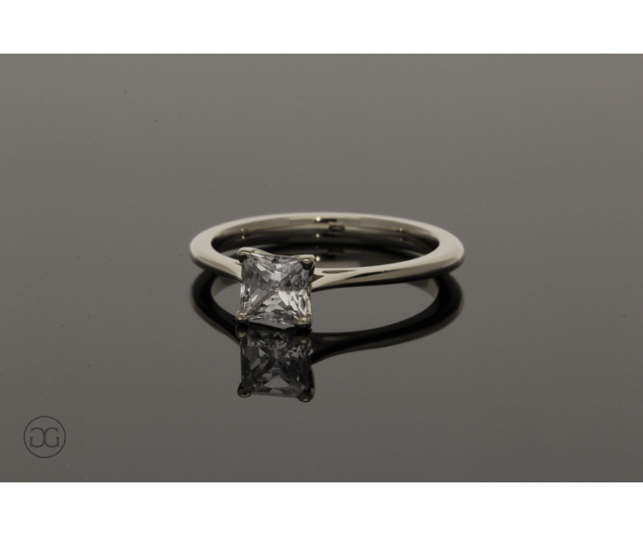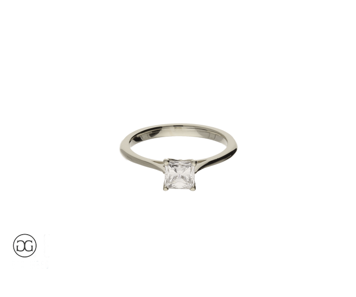 Die klare, feminine Linienführung, feinstes Weißgold in Hochglanzpolitur und ein wunderschöner, hochwertiger Diamant im edlen Princess-Schliff verleihen diesem Ring einen Hauch von schlichter Eleganz.