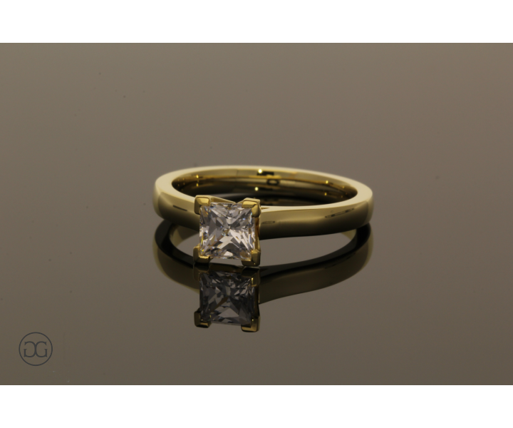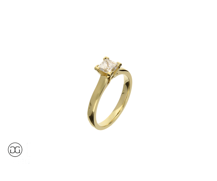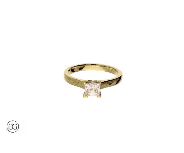 Die klare Linienführung, feinstes Gelbgold in Hochglanzpolitur und ein wunderschöner, hochwertiger Diamant im edlen Princess-Schliff verleihen diesem Ring einen Hauch von schlichter Eleganz.