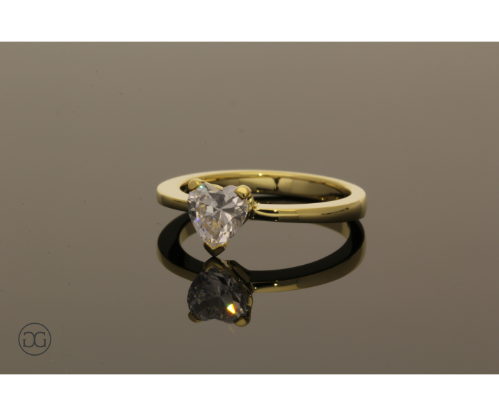 Die klare Linienführung, feinstes Gelbgold in Hochglanzpolitur und ein wunderschöner, hochwertiger Diamant im Herzschliff verleihen diesem Ring einen Hauch von schlichter Eleganz.