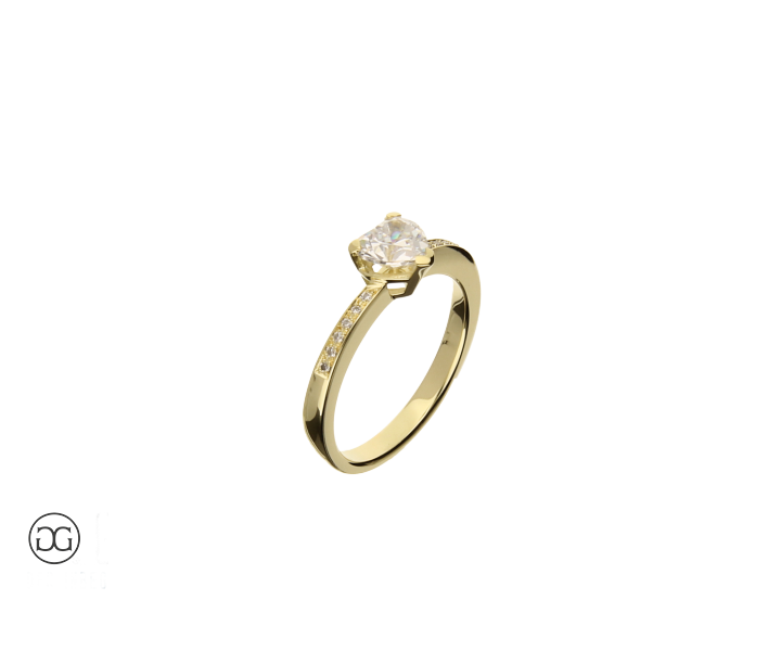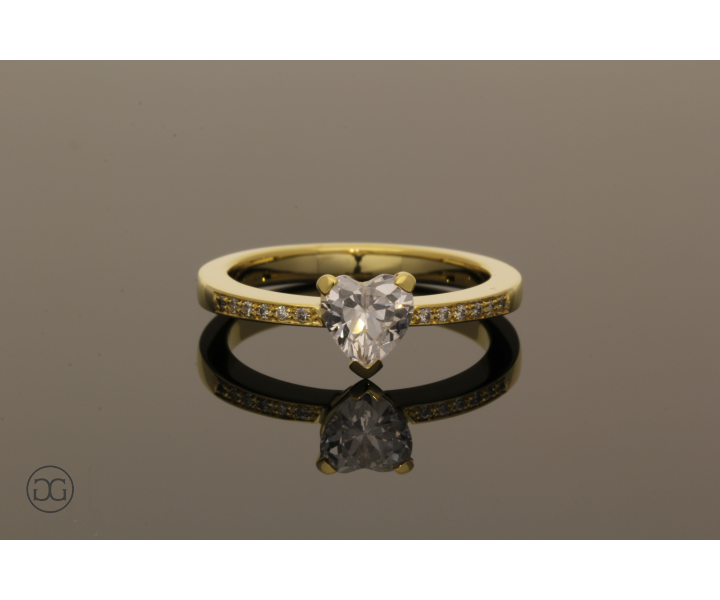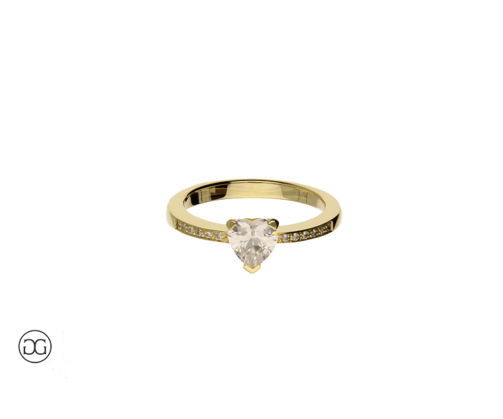 Die klare Linienführung, feinstes Gelbgold in Hochglanzpolitur und wunderschöne, hochwertige Diamanten im Herz- und Brillantschliff verleihen diesem Ring einen Hauch von schlichter Eleganz.