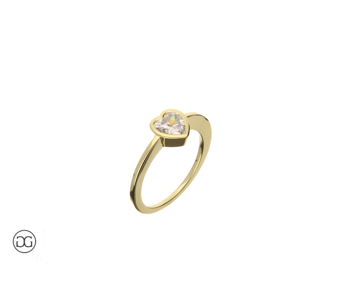 Die klare Linienführung, feinstes Gelbgold in Hochglanzpolitur und ein wunderschöner, hochwertiger Diamant im Herzschliff verleihen diesem Ring einen Hauch von schlichter Eleganz.