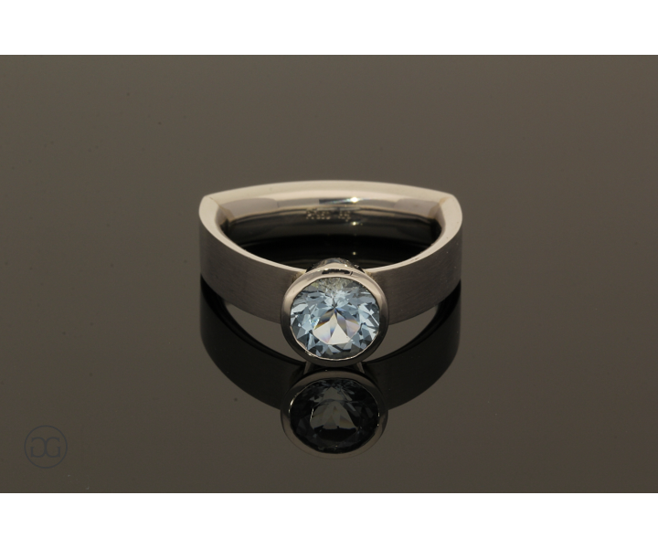 Die klare Formensprache, feinstes Platin in seidenmatter Optik und ein wunderschöner naturfarbener Aquamarin verleihen diesem Ring einen Hauch von schlichter Eleganz und moderner Weiblichkeit.