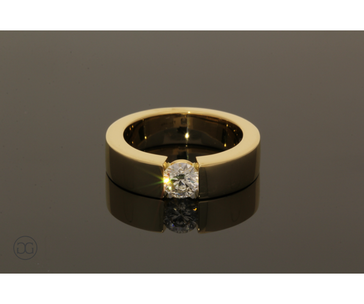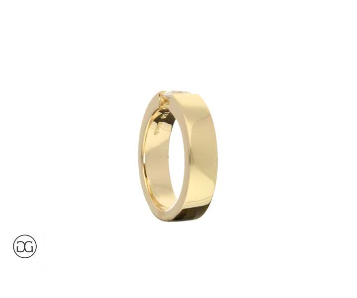 Die klare Linienführung, feinstes Gelbgold in Hochglanzpolitur und ein wunderschöner, hochwertiger Brillant verleihen diesem Ring einen Hauch von schlichter Eleganz und moderner Weiblichkeit.