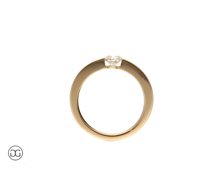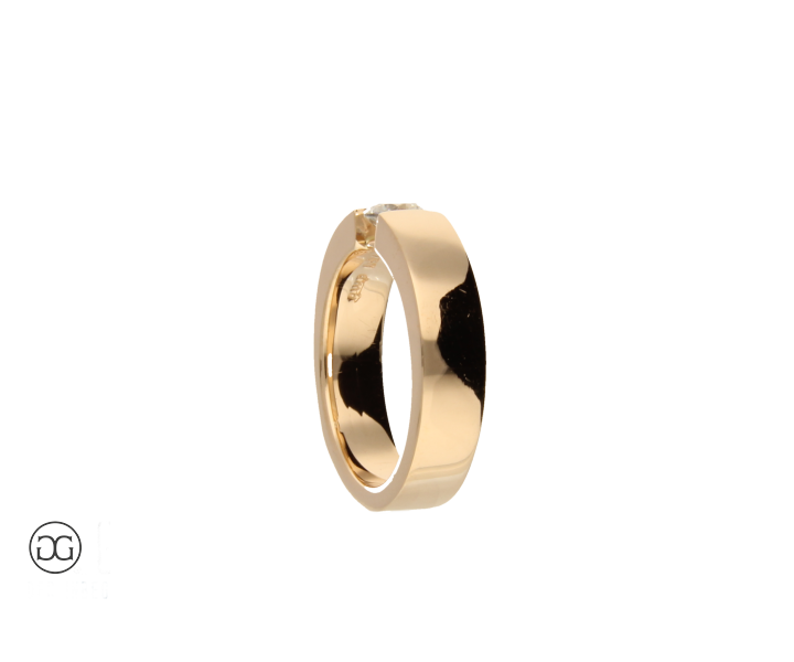 Die klare Linienführung, feinstes Rotgold in Hochglanzpolitur und ein wunderschöner, hochwertiger Brillant verleihen diesem Ring einen Hauch von schlichter Eleganz und moderner Weiblichkeit.