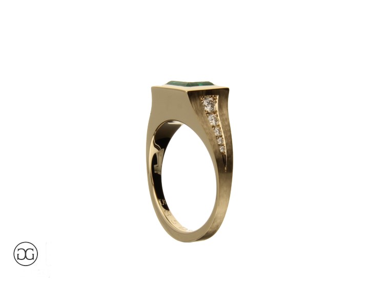 Dieses einzigartige Schmuckstück ist ein Beispiel unserer jahrelangen Handwerkskunst als Goldschmiede und der umfassenden Erfahrung in der Auftragsarbeit. Es wurde gemeinsam mit unserem Kunden entworfen und speziell für Ihn in unserem Goldschmiedeatelier angefertigt.